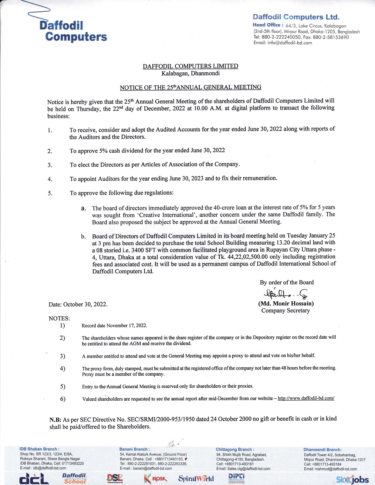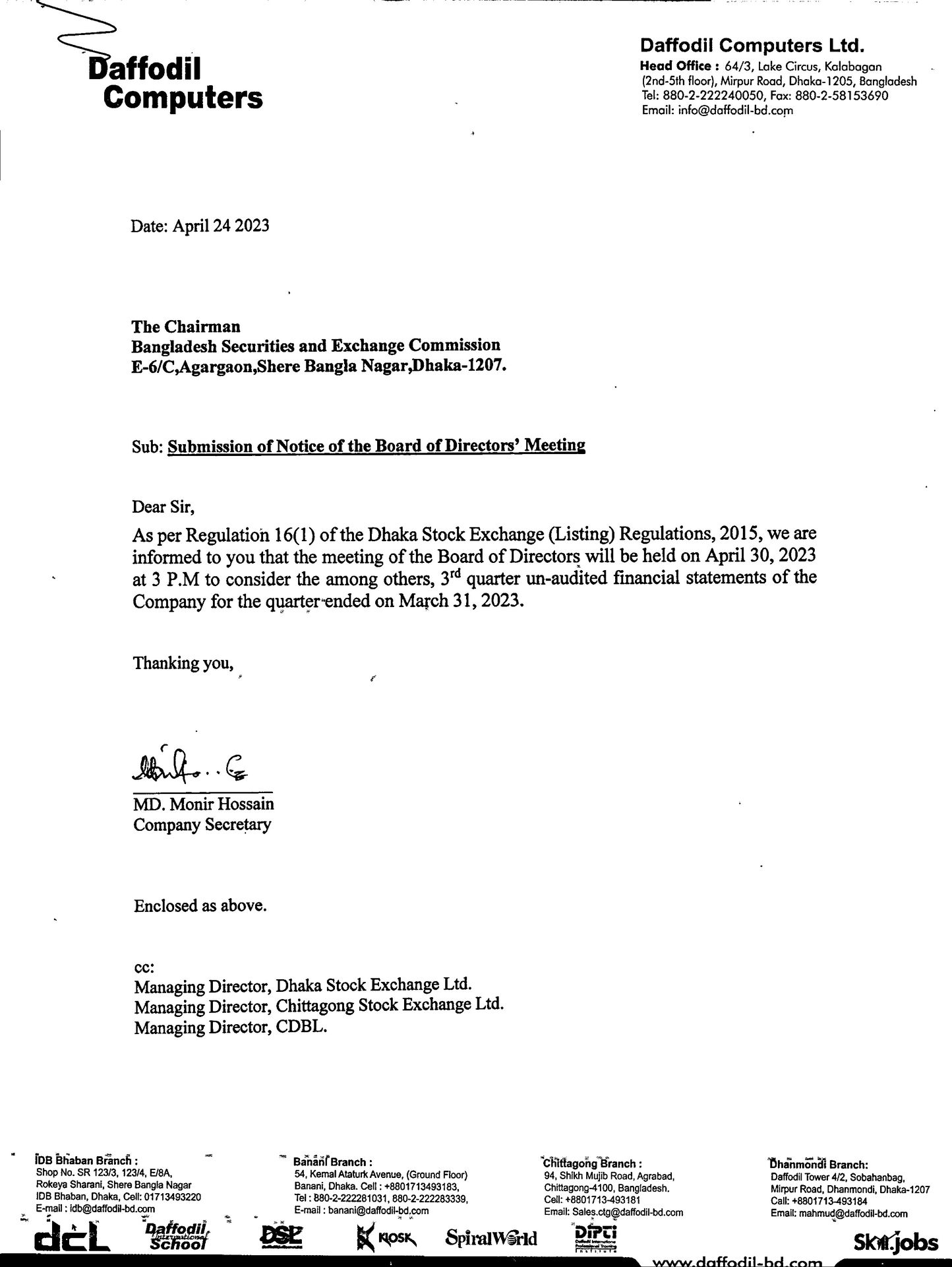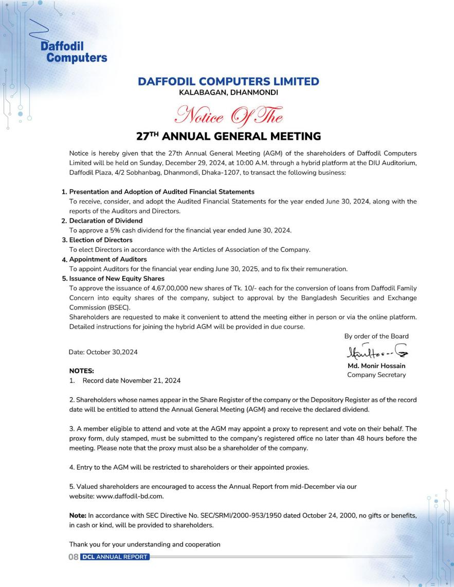 Notice Board of Daffodil Computers Ltd.